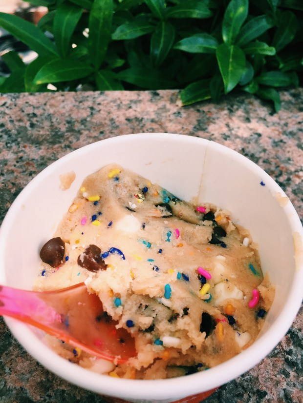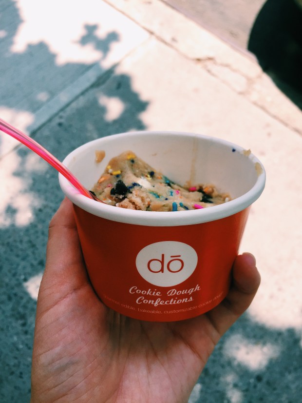 Finally got my hands on some DŌ cookie dough! This stuff is magical, but definitely best in small doses since it is ridiculously sweet. And one small container is enough for two people (Naturally, Ben and I each got our own). I ended up getting the cake batter flavor and Ben got the classic chocolate chip. Both were delicious and tasted like genuine raw cookie dough. One thing though: I really wish they had a place to sit inside! It’s located on the second floor of a building and the small suite is just their kitchen where they also sell the cookie dough.