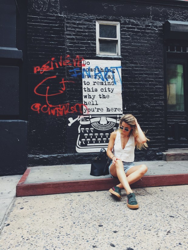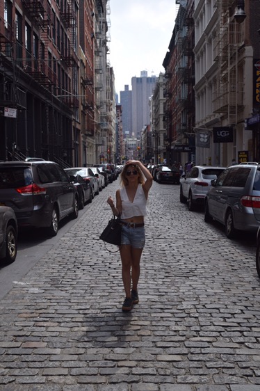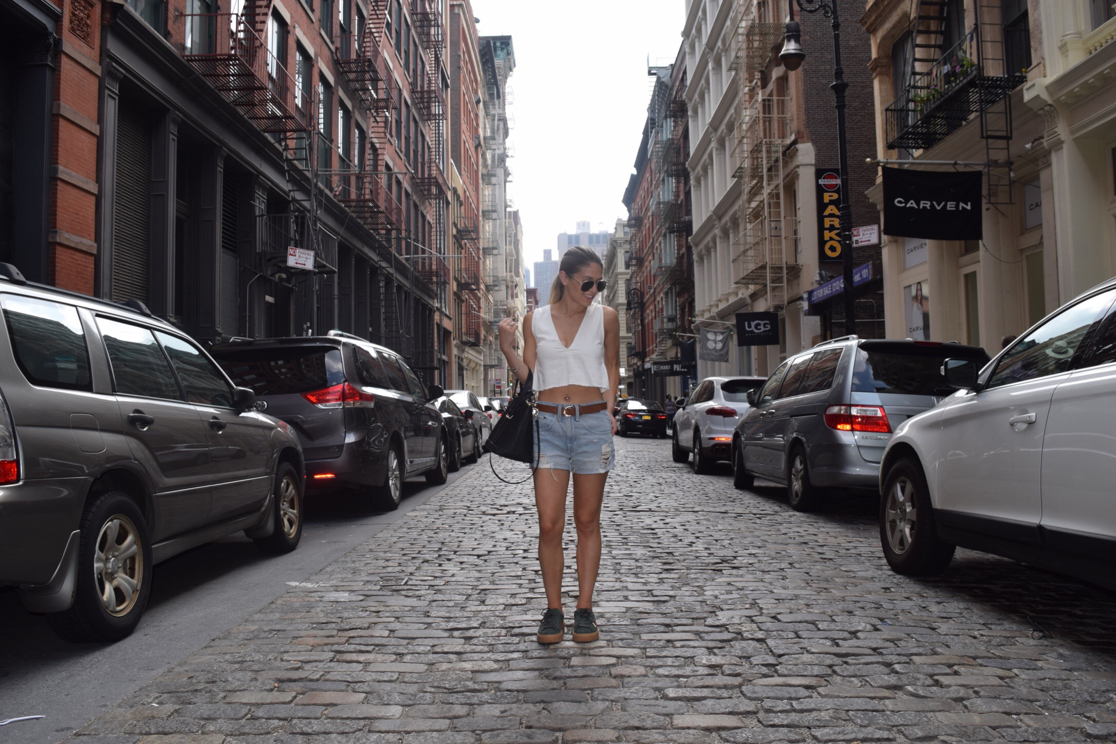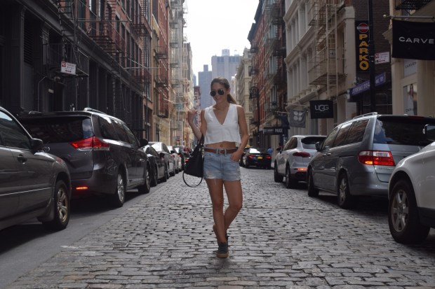 Another hot Saturday in the city! I was going for casual and comfort. I haven’t been too crazy about this particular style of jean shorts–they are definitely a relaxed fit, which I find really comfortable, but I’m not sold on them. I’ve tried them with tee-shirts, body suits and cropped tops, but nothing seems to stick. I don’t discourage anyone from trying them on, though!