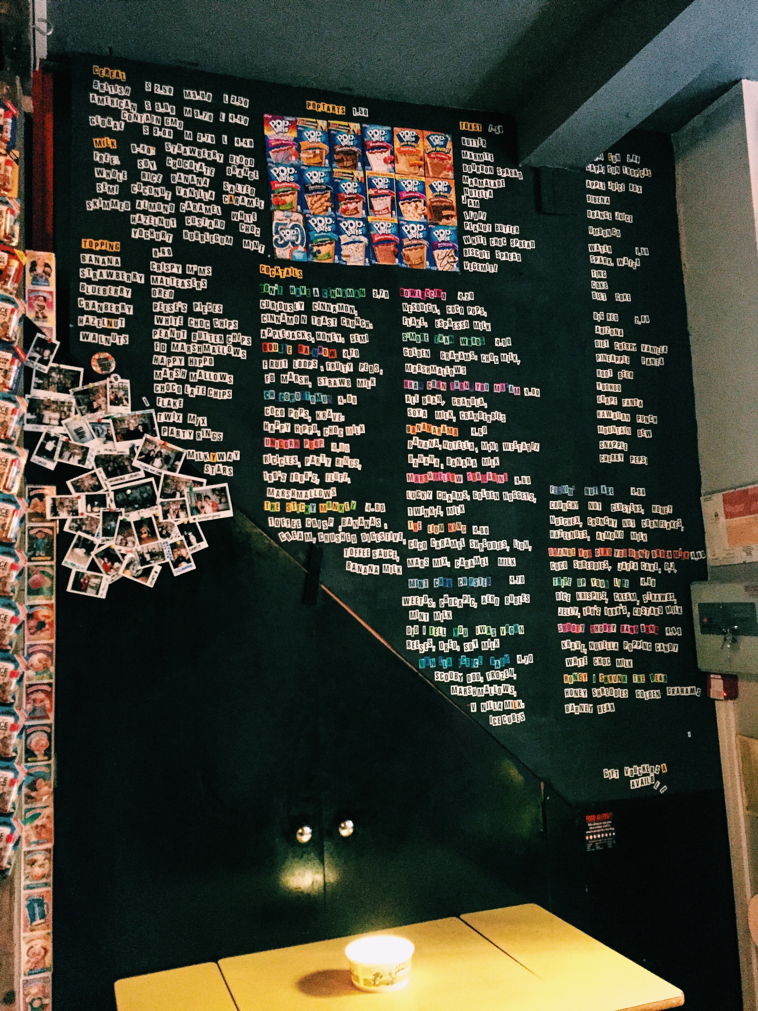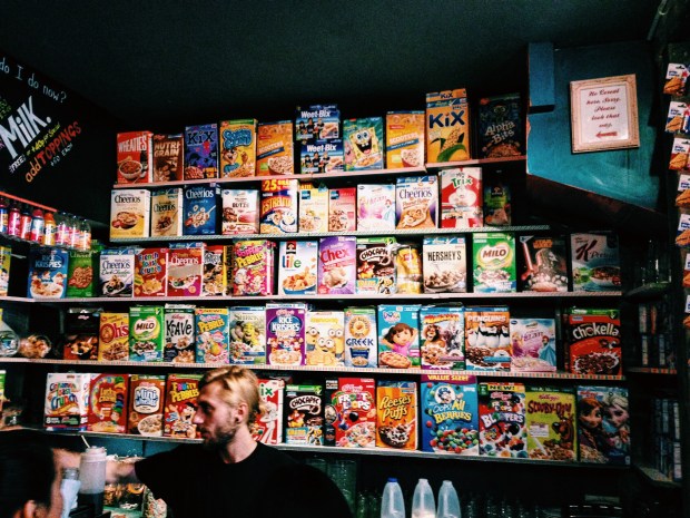 Meant to post about this yesterday for ‘throwback thursday’, but time got away from me! I guess it still works as a “flashback friday”. Just wanted to share this really cool place worth checking out if you’re ever in London. It’s called the Cereal Killer Cafe and it’s pretty sweet (figuratively and literally). It’s a tiny little spot in Shoreditch and as implied by it’s name, it’s a cereal cafe. They have over 100 kinds of cereal, including cereals from all around the world. The colorful boxes decorate the walls inside the cafe and it’s pretty cool to see some throwback cereal boxes and boxes from other countries, like Australia among others. Here’s how it works: they have a menu with suggested cereal, milk and topping concoctions. You can also use your imagination and customize your own cereal bowl according to your own sweet tooth. It’s kind of dark and slightly murky, but I think that helps give it some character. I should mention that the bowls of cereal are also pretty cheap, so visiting Cereal Killer Cafe is a great way to keep your wallet happy while exploring an up-and-coming neighborhood in Londontown.