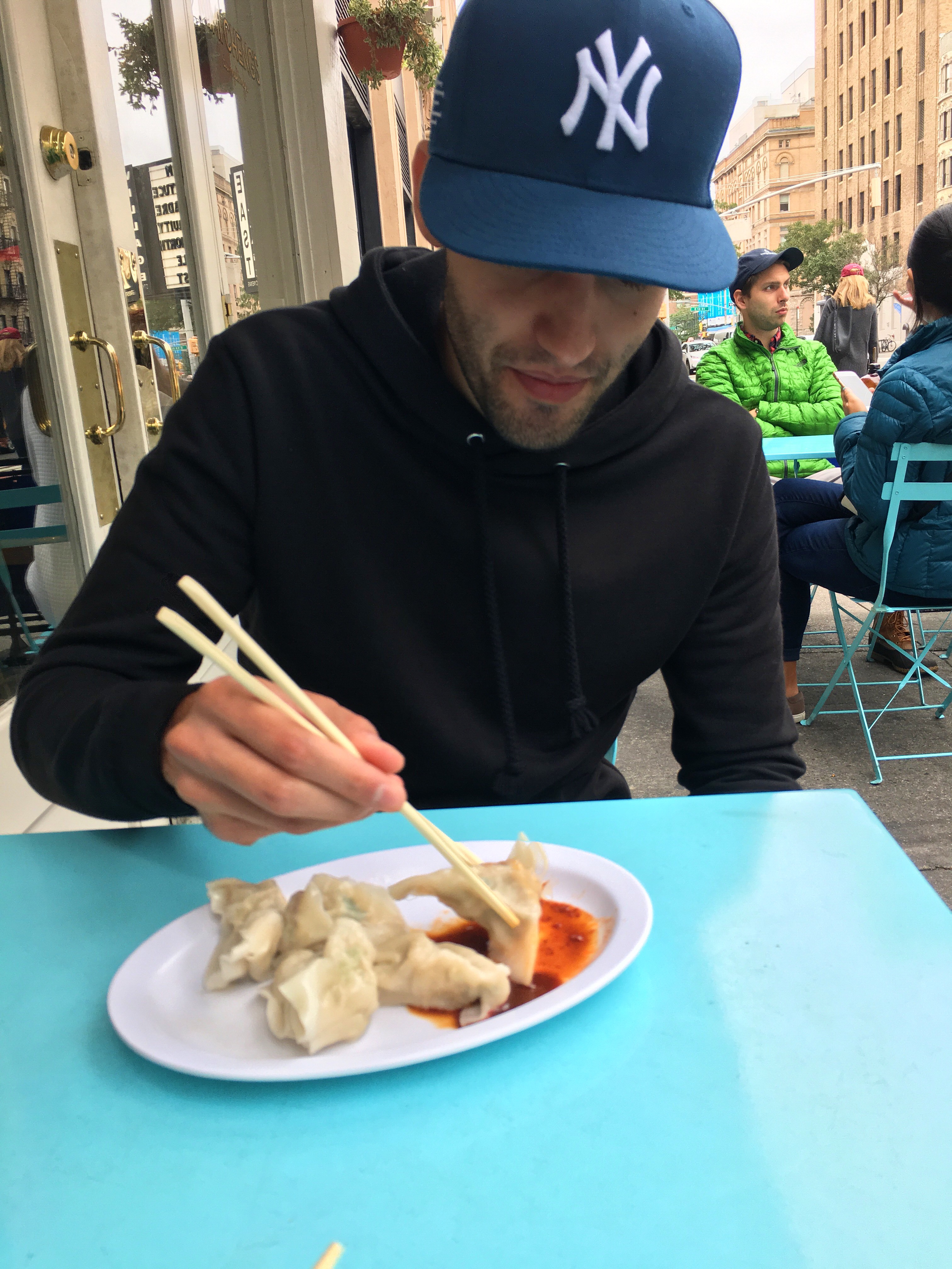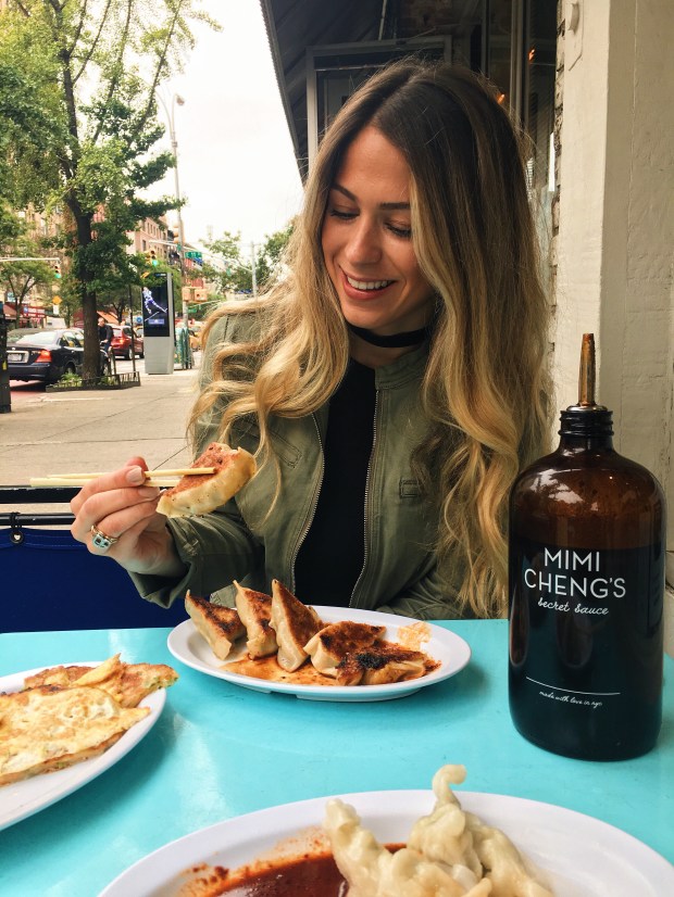 And who doesn’t? Mimi Cheng’s dumplings are so good I swear they’ll change the mind of any non-believer. Today we stopped in to this small east village joint for some delicious Taiwanese dumplings. They’re made from scratch and you can watch the pros hard at work behind the counter, which I found super intriguing. Ben and I both did the 50-50 option and got 4 of “The Mimi Cheng” dumplings and 4 of “The Reinvented Classic”. I obviously opted for the pan fried dumplings, but Ben went with boiled. Both versions were equally delicious and jam packed with flavor. They were so juicy and extremely fresh– you can definitely tell that they use only quality ingredients. They tasted like HEAVEN, especially when smothered in “Mimi’s Secret Sauce”. It’s worth noting that Mimi Cheng’s is actually a quick-eats kind of place, so there isn’t any waiter service. You can easily pop in for a great quick meal if you’re in the neighborhood! To hold you over until you can get your own hands on these babies, I recommend checking out their website, where you can find the story behind Mimi Cheng’s and learn about their commitment to sustainability.