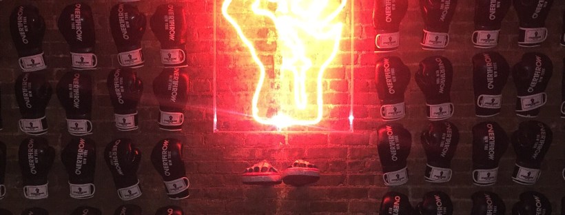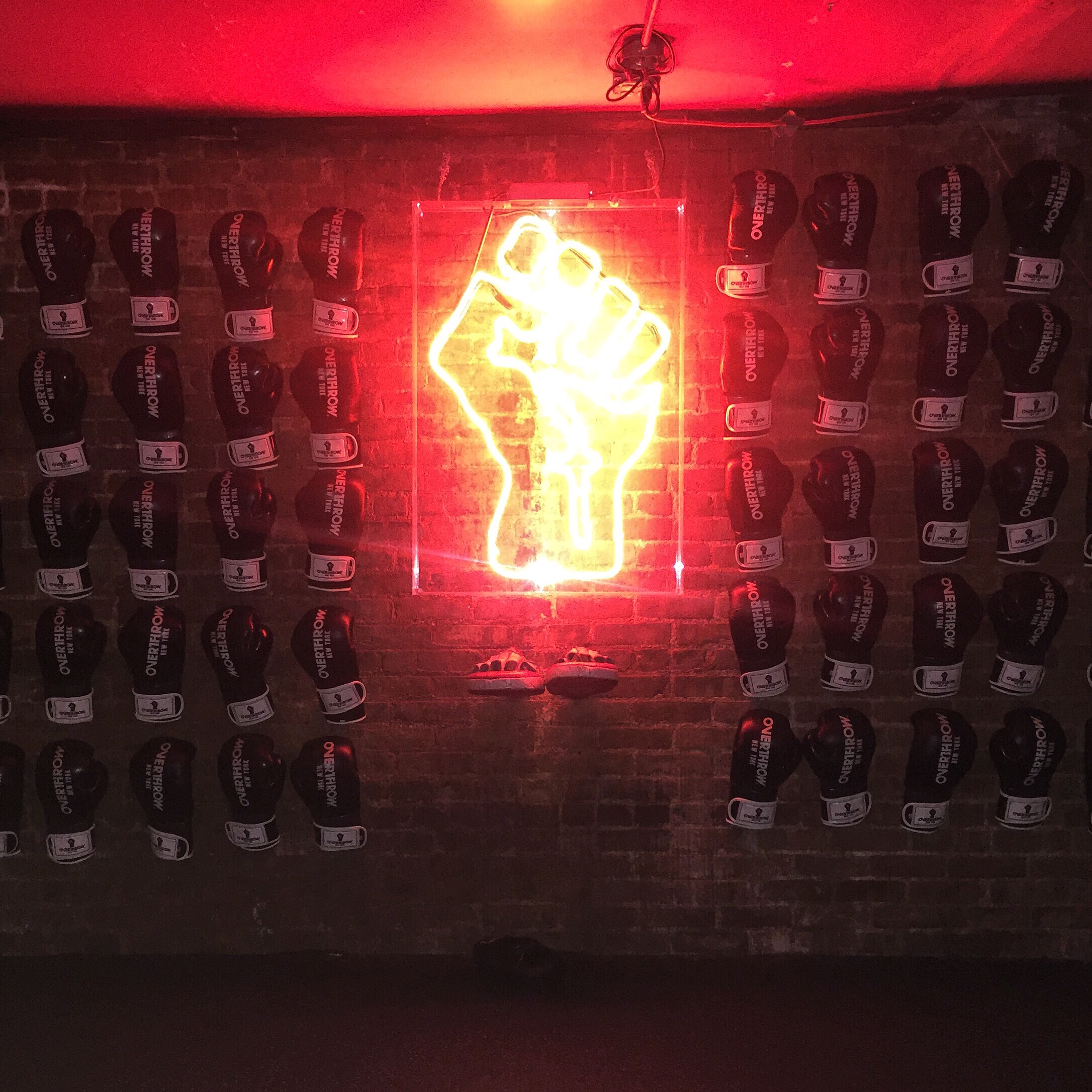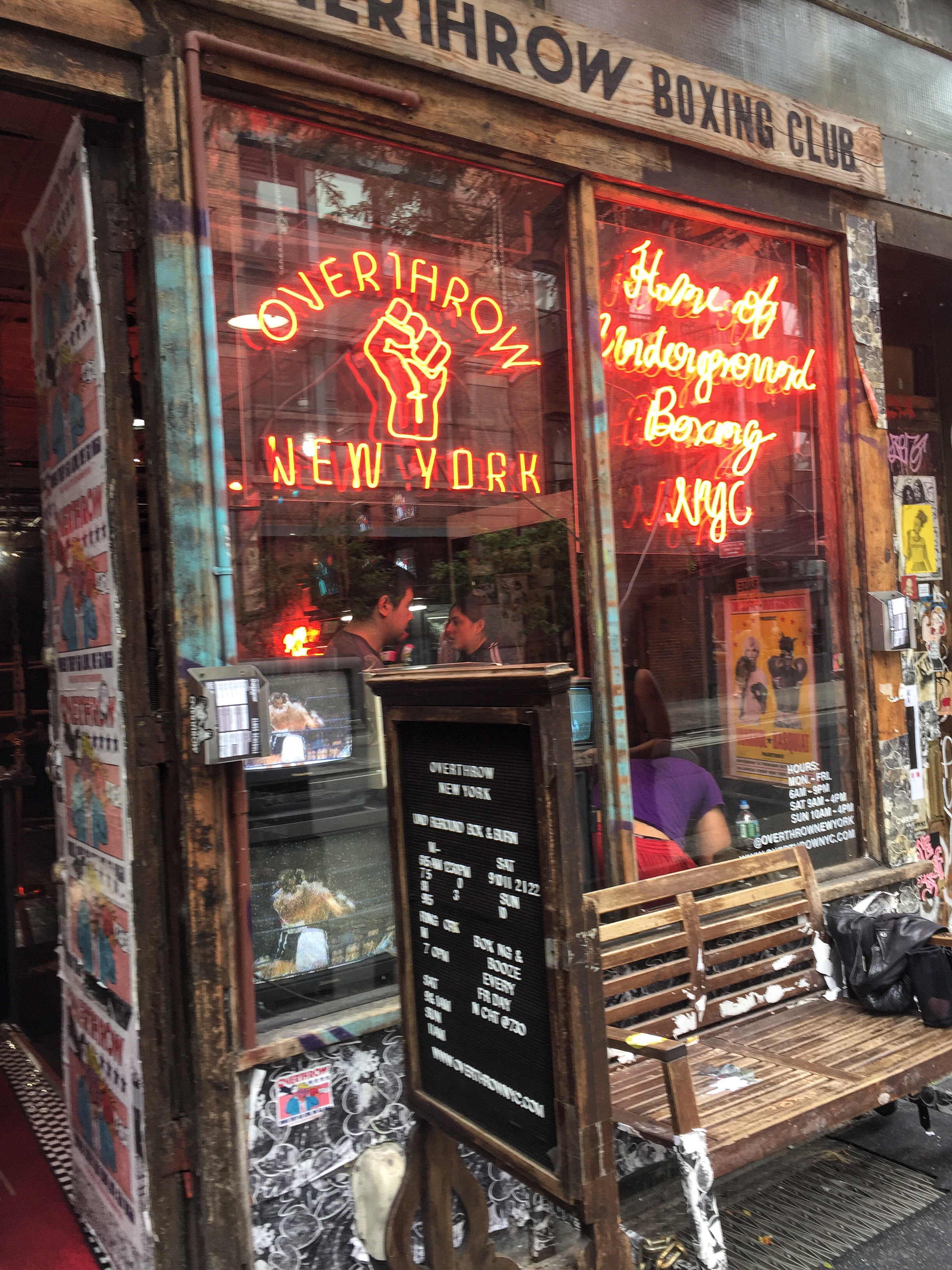 Anybody who knows me knows I LOVE a good ass-kicking, crawl-your-way out of the gym workout. It goes without saying that New York is the best when it comes to finding new, unique classes where you can get your sweat on. Whether you’re a yogi, a spinner, a runner or just an unclassified workout enthusiast, there’s something for all athletes of all levels. Boxing classes are by far my favorite because they not only give you a hardcore full-body workout, but they’re super interactive and fun (not to mention my attention span is way too short for many other workouts). Today, my friend Paulina and I headed down to SoHo for a morning class with Rage at Overthrow Boxing Club. This place is amazing and the pictures just don’t do it justice. I love how authentic it is. It’s so easy to stroll into a gym that’s ritzy and posh, but Overthrow has serious character and attitude.