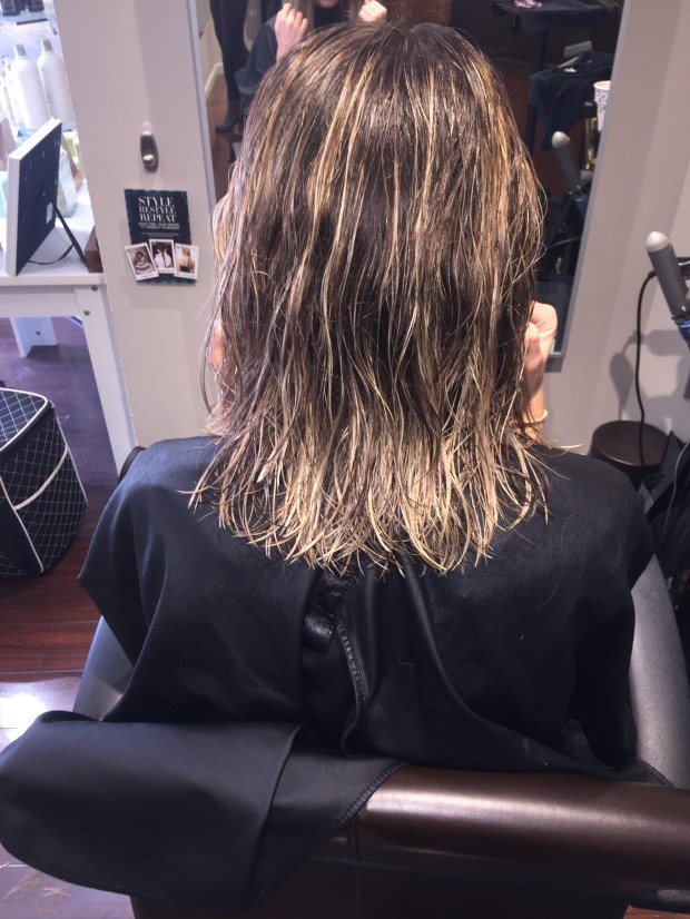 I’ve always had the “long hair don’t care” kind of mentality. I LOVE long, luscious locks and I’ve had long hair for as long (hehe) as I can remember. The mere idea of just a small trim has always been enough to send me into straight panic mode at the salon! I’m sure many of you out there can relate. Having long hair has always been a little difficult for me because my hair is naturally wavy, so it takes a lot of time and effort to style it. I’ve really been struggling to maintain it recently and I’ve been wearing it in a bun to work almost every day of the week because I just don’t have the time or energy to blow it out. I work in a professional atmosphere, so wearing it naturally tends to make me feel a little messy and out of place. I’ve been thinking about trying a new, more professional look for a while and being that a hair cut and color (especially color!) has been long overdue, this time I decided to mix it up. Rather than my usual trim, I decided to take a chance and go for a “lob” inspired look. It took a ton of mental preparation and I’m honestly surprised I even went through with it! And yes, I know that it is, in fact, not that short. We also had to fill in where my ombré had grown out. I didn’t want the highlights to start all the way at root because I like the dark root look and it’s MUCH less maintenance as the hair grows out. I can typically get away with touching up the color twice a year, which saves time AND money. We went pretty heavy on the highlights to match my ends and we also got rid of the golden/yellow color.