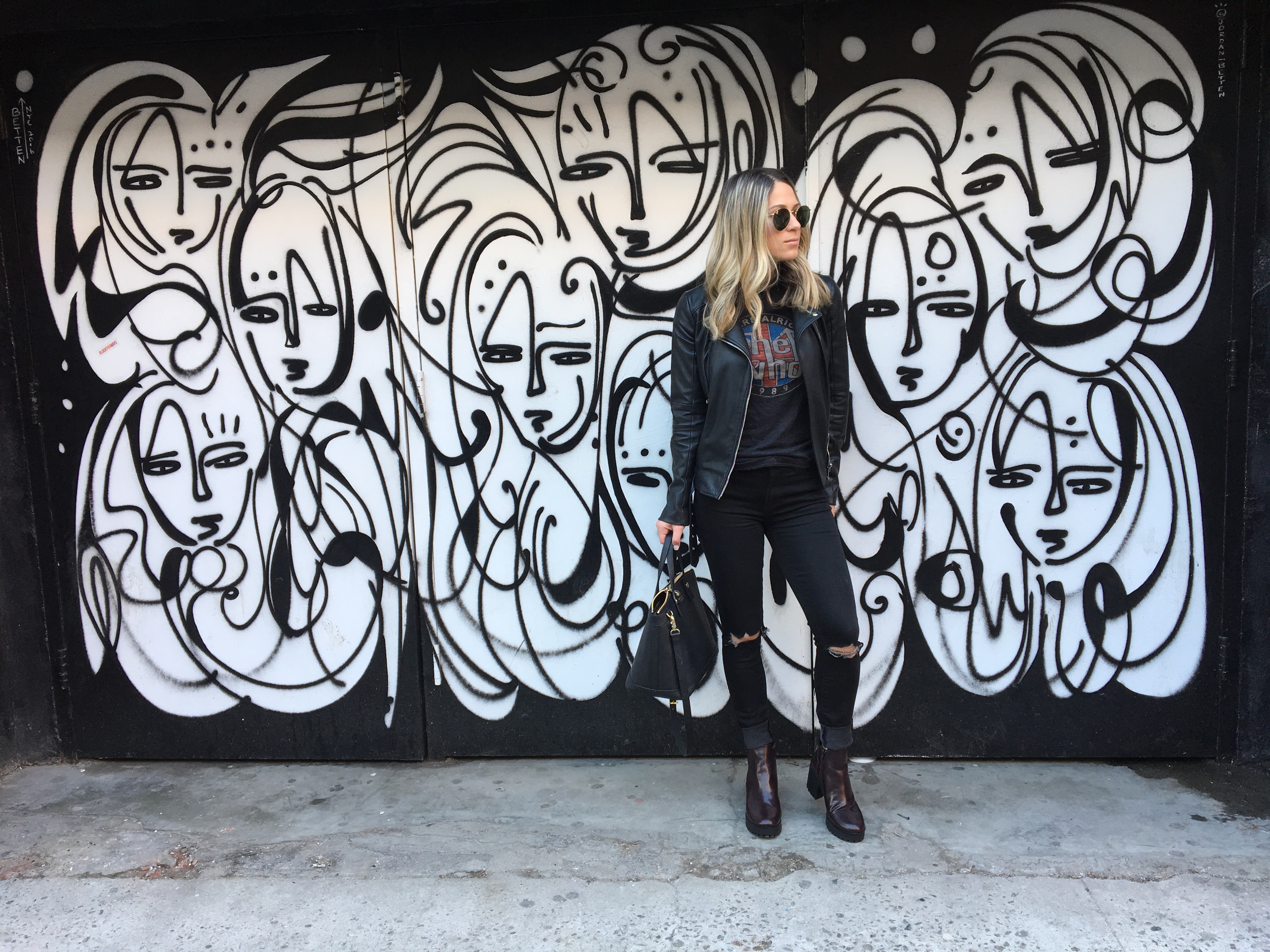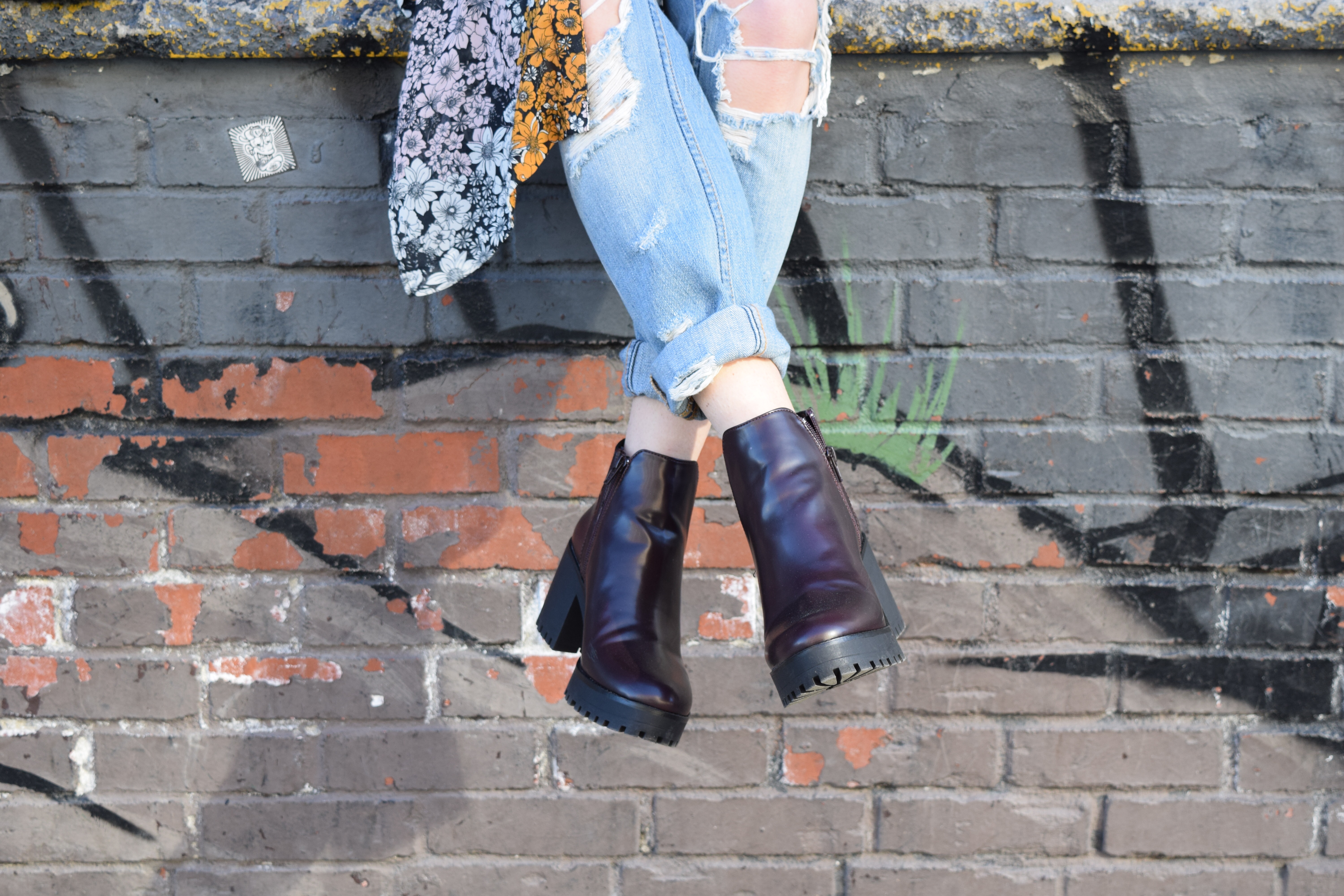 I paired my flower child top with destroyed boyfriend jeans and my new chunky Zara boots, which I seriously cannot get enough of! I’m currently loving chunky ankle boots and combat boots. The burgundy might not necessarily go with everything in my closet, but they’re a subtle statement boot. I’m a big fan of the contrast with both the black heel and elastic details on the sides. It was a nightmare trying to get them, though! They’re sold out in my size online so I had to try four different Zaras in the city before finally snagging a pair (they kept sending me to different stores because they couldn’t get their inventory straight, lolz). Check them out here. I also wore them with a simple, graphic retro band tee earlier that weekend!