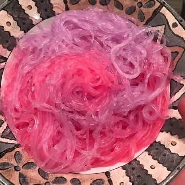 img_5699-1 Previous Next Published April 11, 2017 at 3024 × 3024 in I tried making Unicorn Noodles and here’s what happened… The lemon juice will turn portions pink!