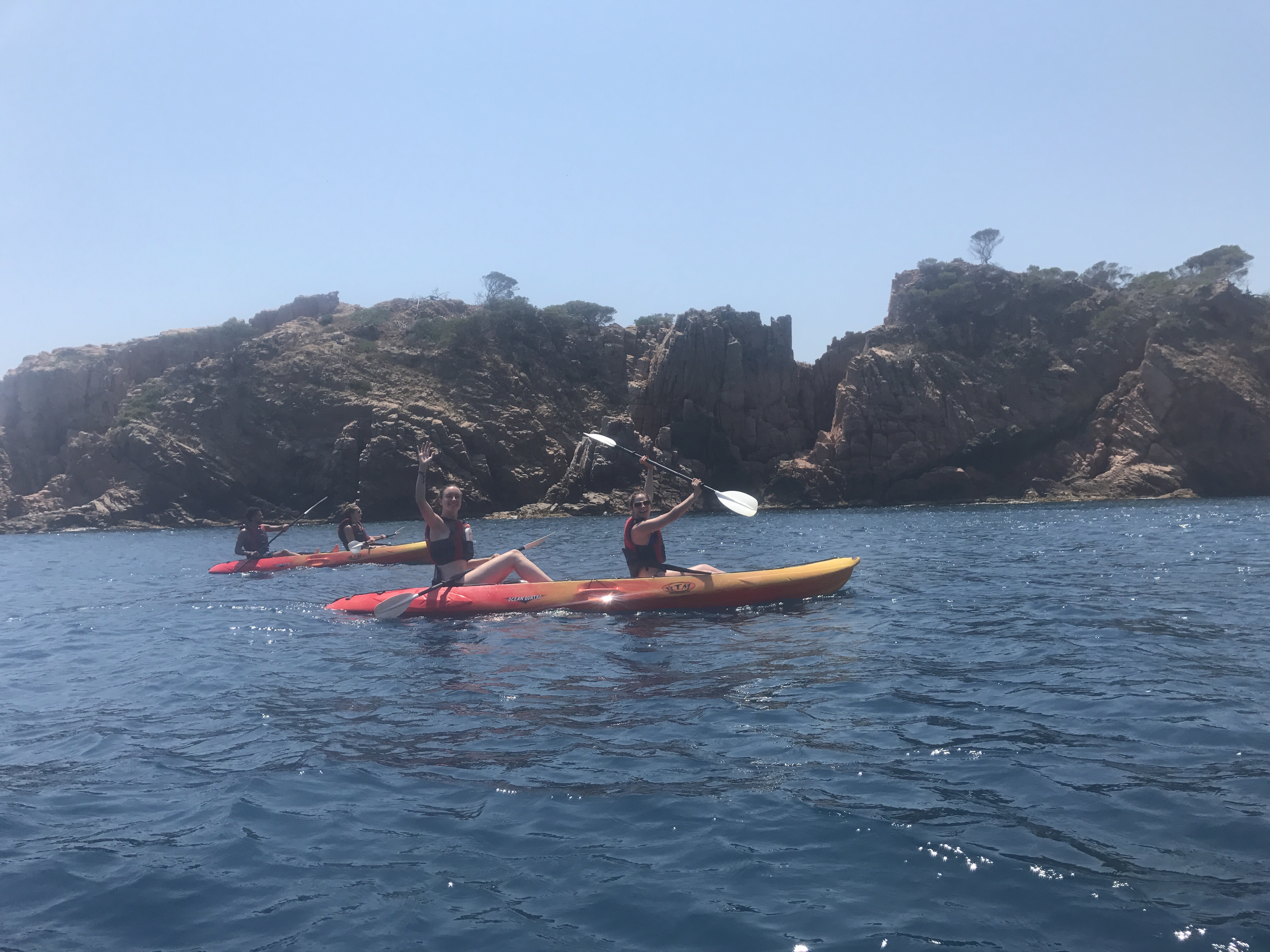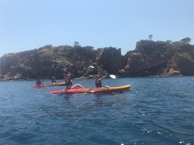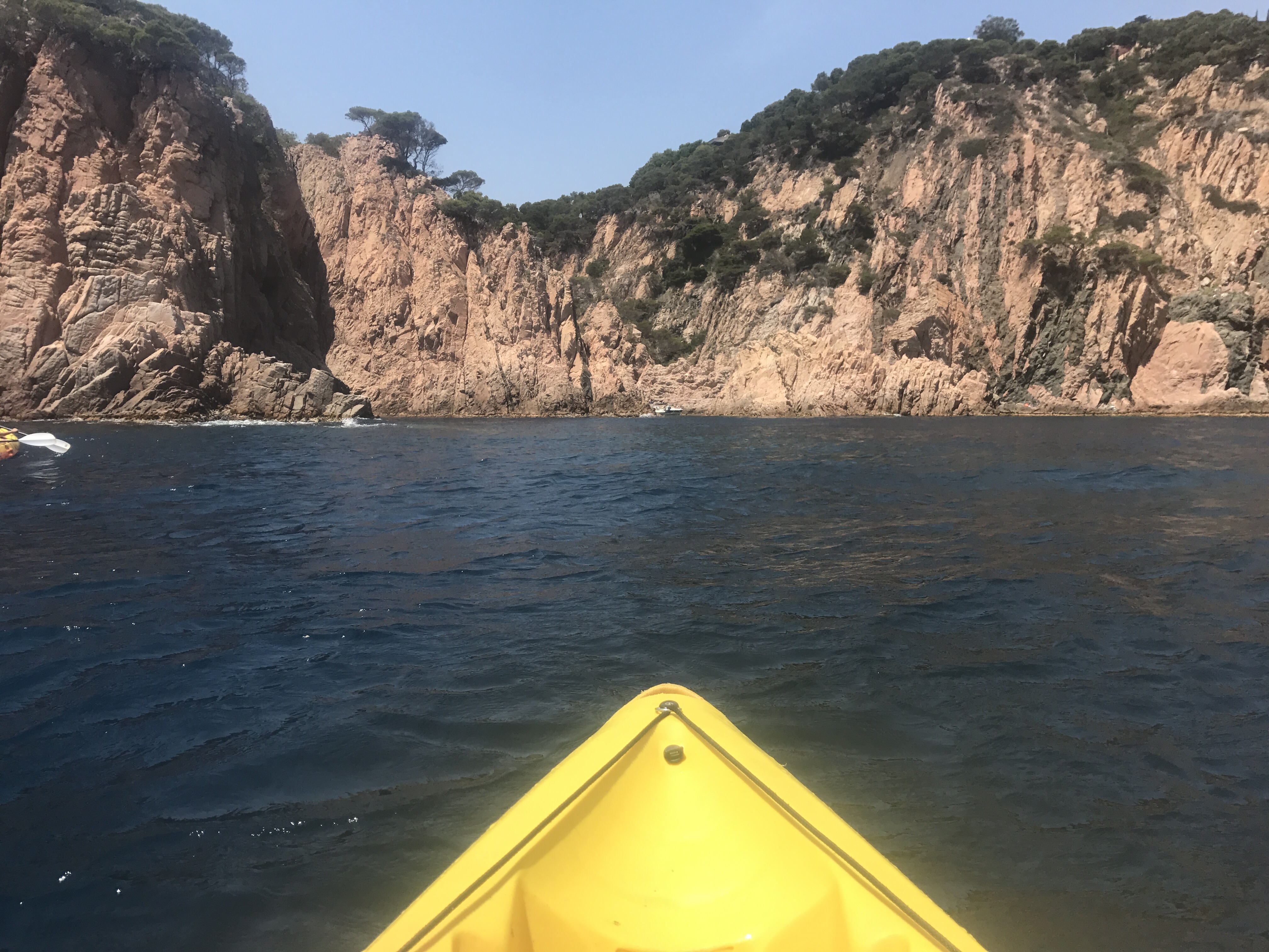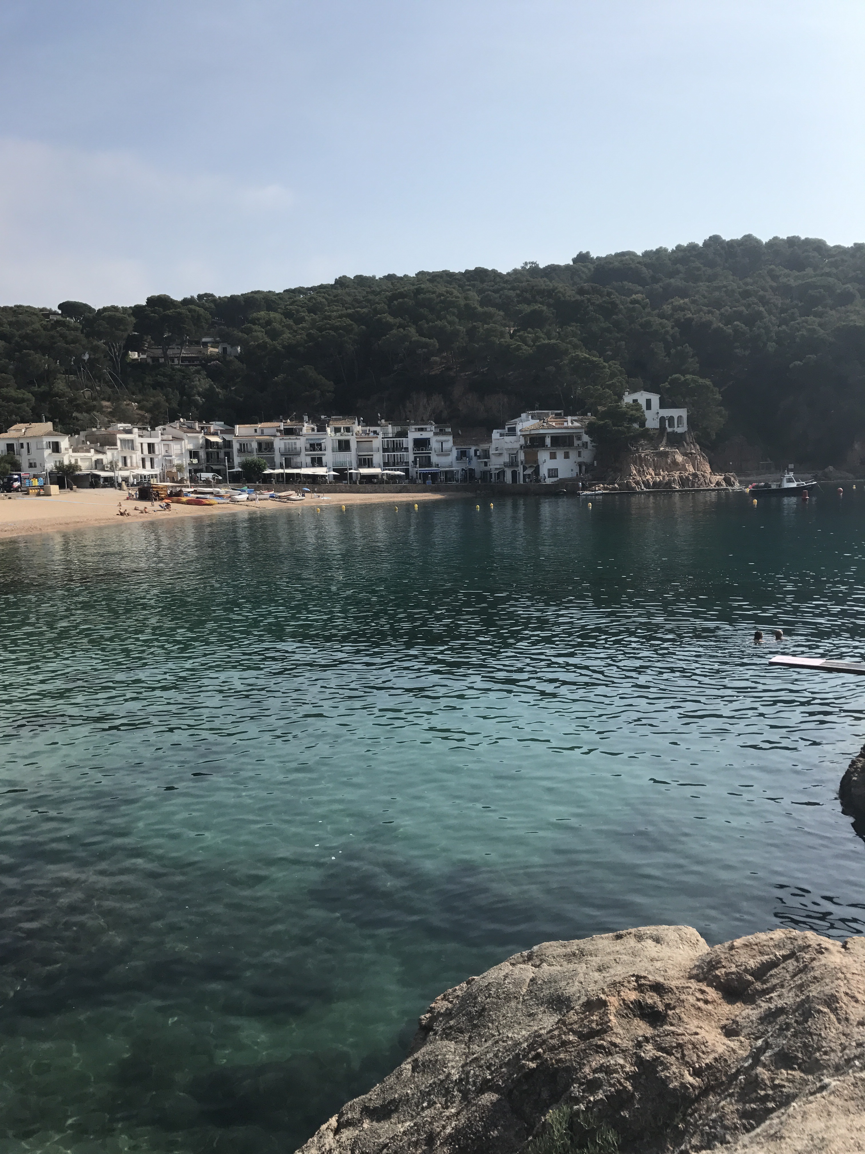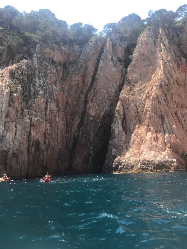 We started our day at Tamariu climbing rock steps to take in the views below, floating around in the crystal clear water, and jumping off the (kind of scary…) high dive. I had my eyes on the kayaks all afternoon and was so stoked to hear that everyone else was on board with a kayaking excursion. There were a ton of routes up Costa Brava to choose from, and we ended up picking a 2-hour journey that would lead us to the biggest cave in the area. Did we find it? Perhaps. The cave that we ended up paddling through was huge and pretty much pitch black. While it was so cool, it was honestly creepy! On our way out of the cave, we passed a boat dropping off swimmers who wanted to wade through the darkness with their go-pro. Props, peeps. Major props.