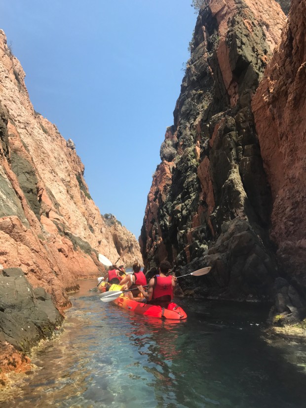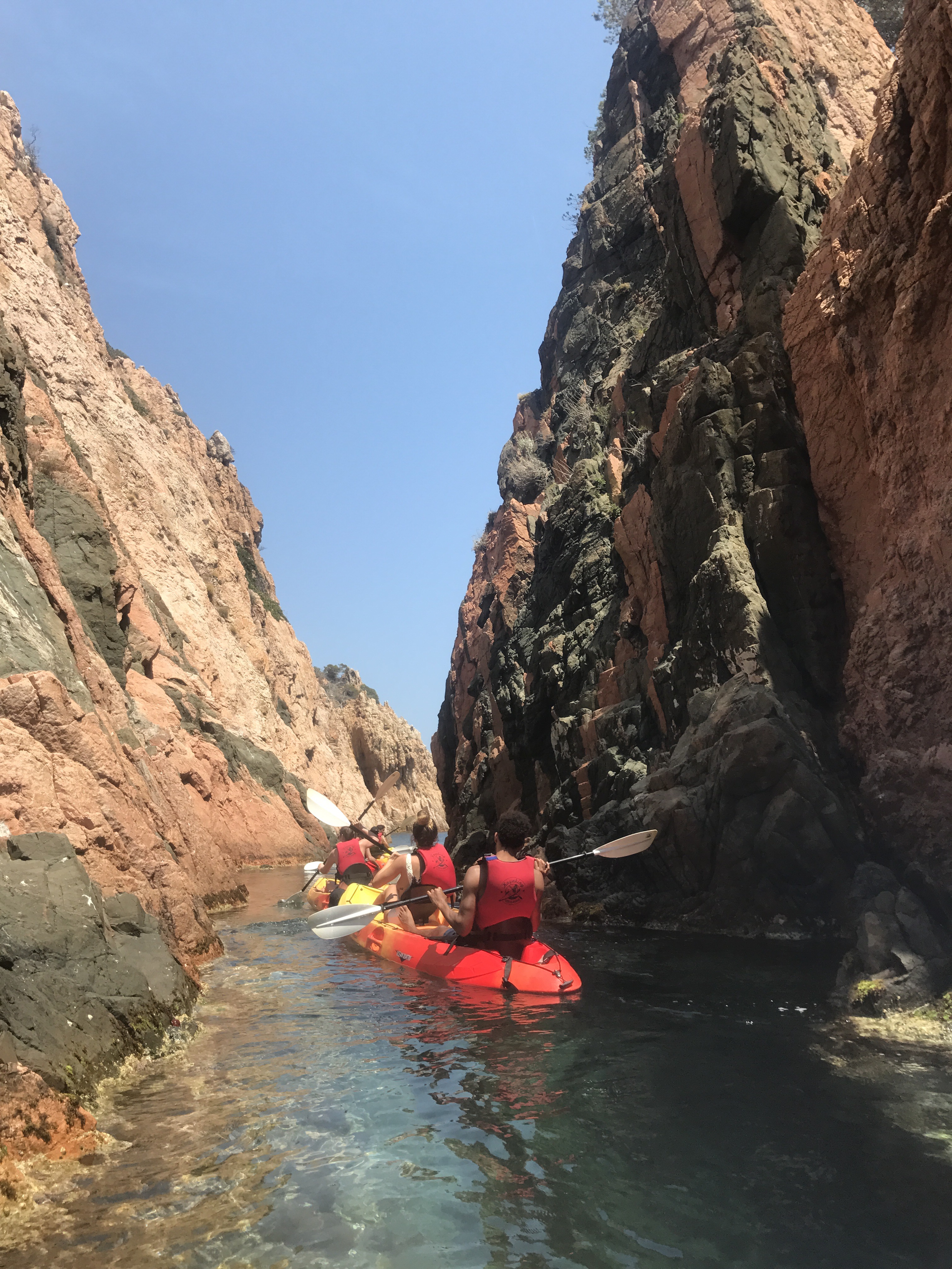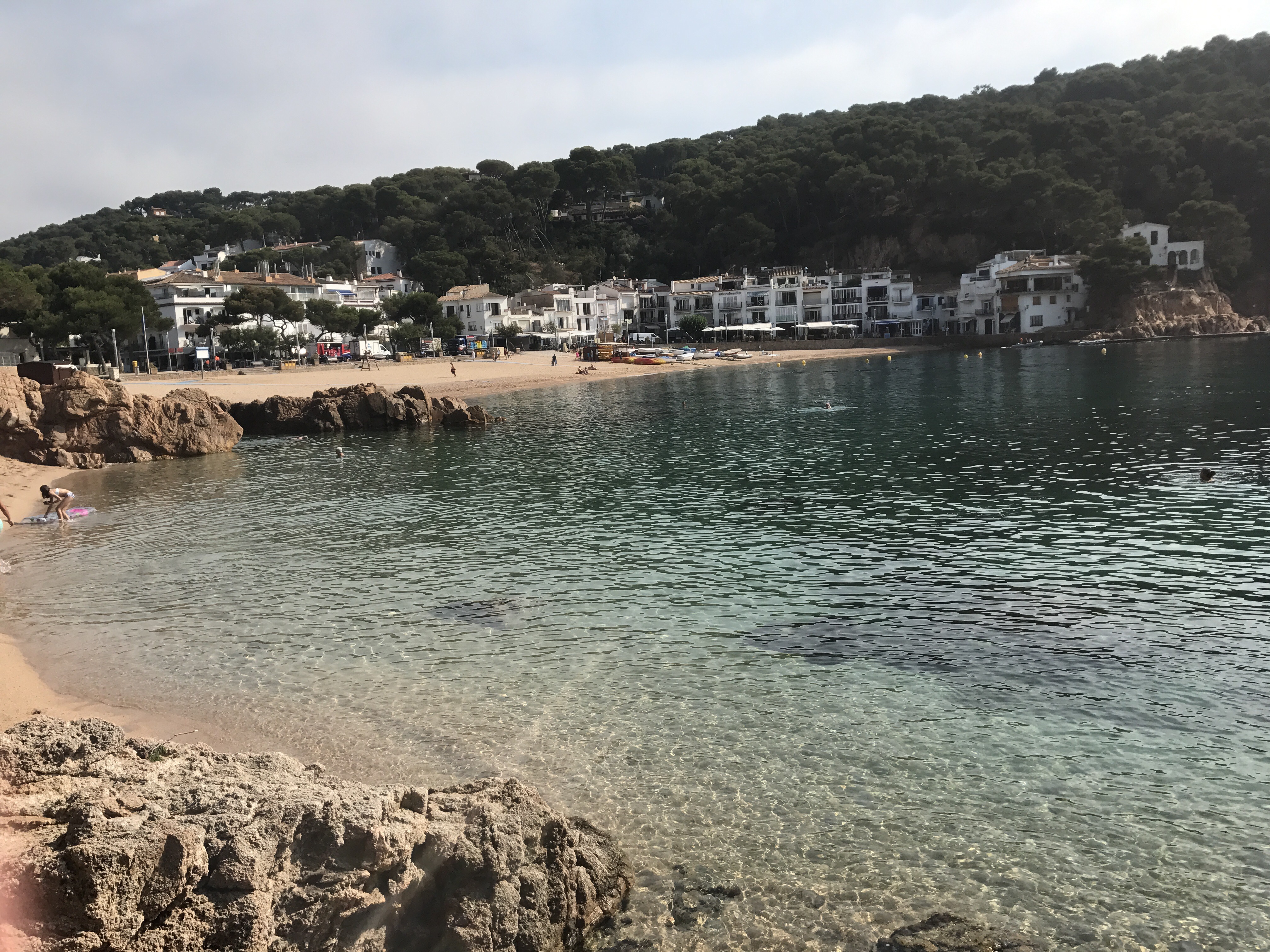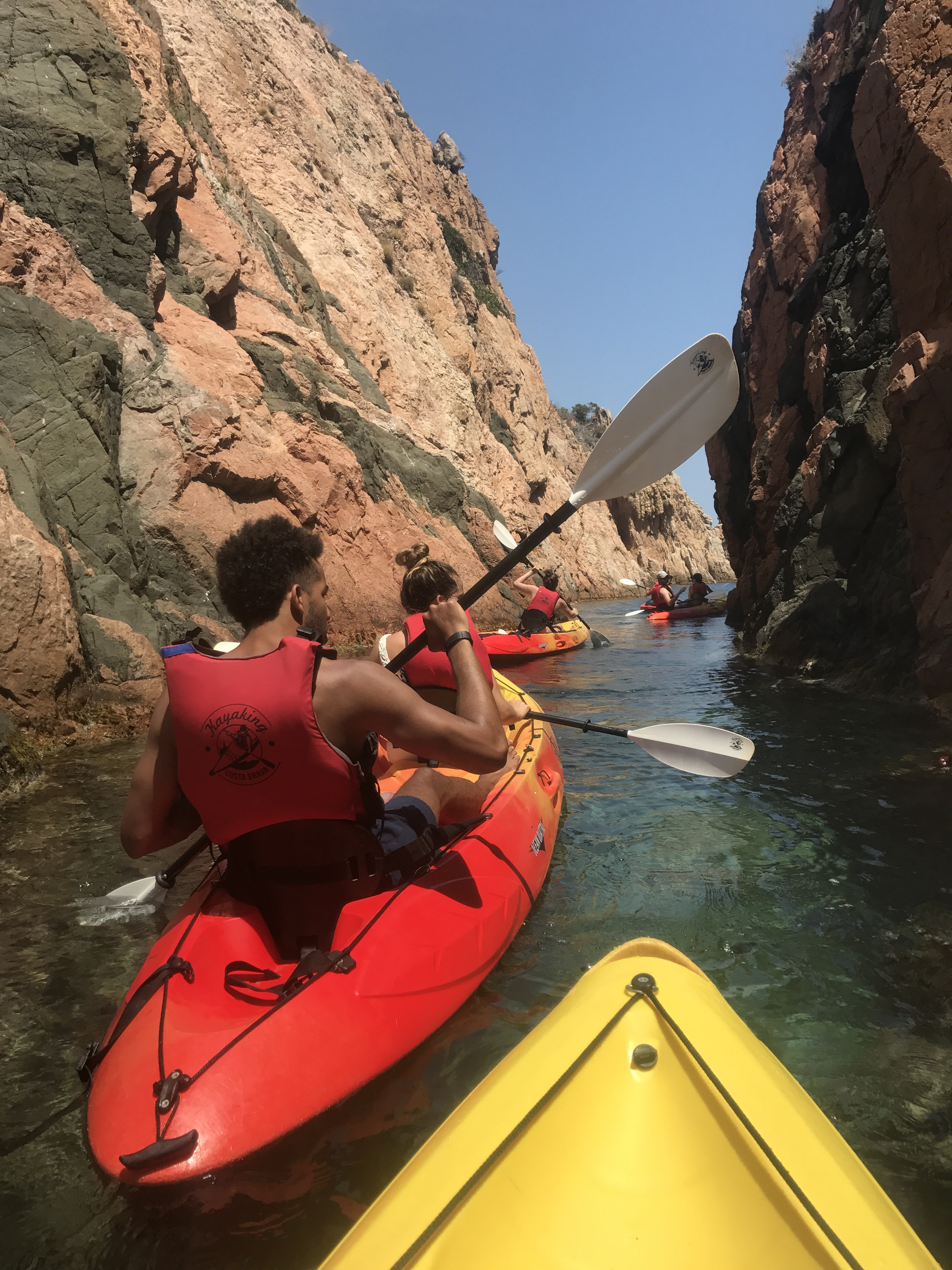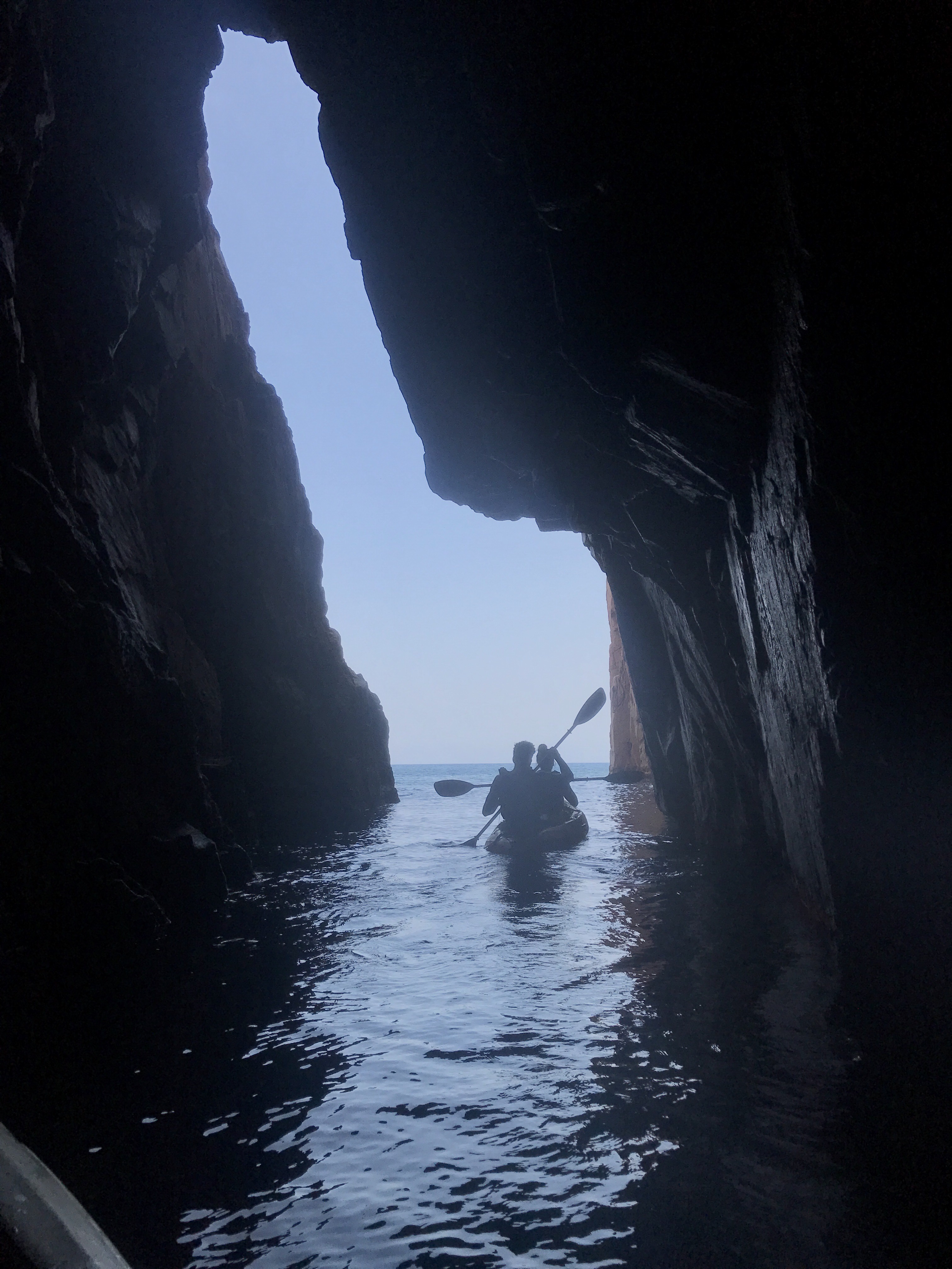 We started our day at Tamariu climbing rock steps to take in the views below, floating around in the crystal clear water, and jumping off the (kind of scary…) high dive. I had my eyes on the kayaks all afternoon and was so stoked to hear that everyone else was on board with a kayaking excursion. There were a ton of routes up Costa Brava to choose from, and we ended up picking a 2-hour journey that would lead us to the biggest cave in the area. Did we find it? Perhaps. The cave that we ended up paddling through was huge and pretty much pitch black. While it was so cool, it was honestly creepy! On our way out of the cave, we passed a boat dropping off swimmers who wanted to wade through the darkness with their go-pro. Props, peeps. Major props.