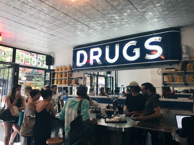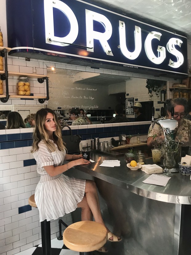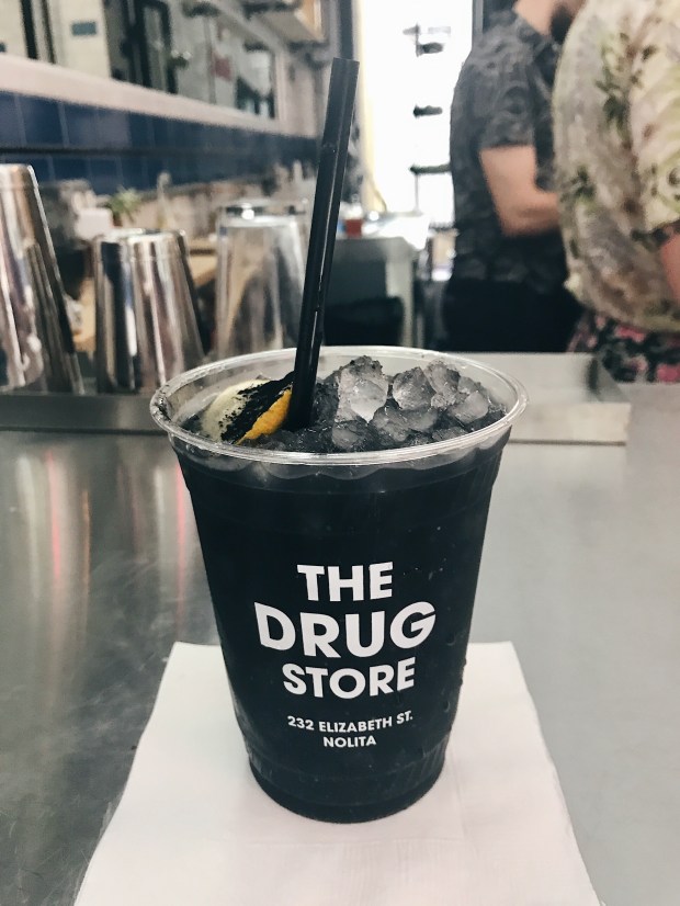 Not only is it the healthiest, but it's definitely among the most beautiful! The space is gorgeous. I feel like it was designed for the sole purpose of being flaunted on Instagram. It's retro, sleek, and the DRUGS sign is perfect. It's just like an old school pharmacy! I loved the jars of lemons and the stools around the bar, but favorite part was the exterior of the building. It has huge glass doors and two window spots where the windows open up onto Elizabeth St. It's such a gorgeous store front!