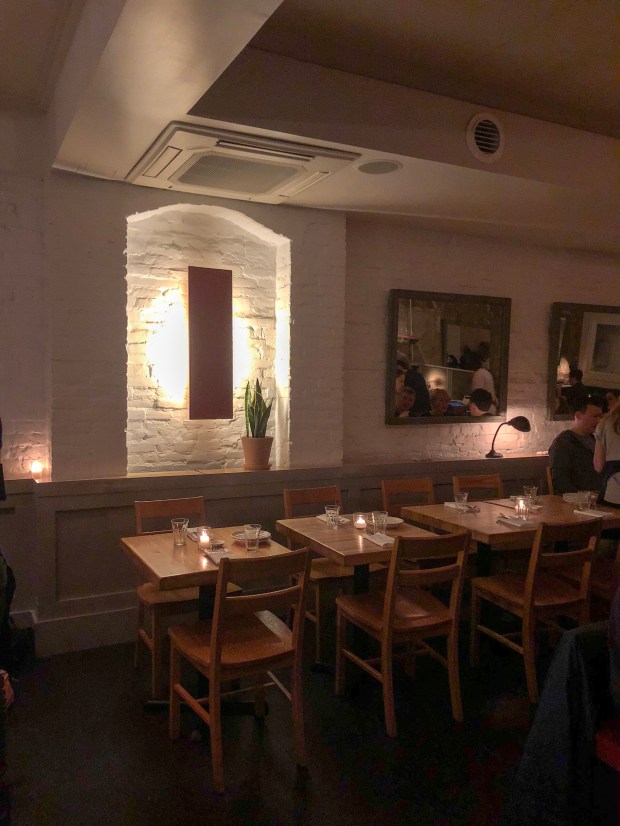Tucked away on Greenwich Street in an area called “Hudson Square” (aka the awkward spot where SoHo meets West Village meets Tribeca), you’ll find this small haven serving up fresh, tasty food in THE COZIEST space. Between the white brick, dim light, and the run-down, unfinished look of the wall behind the bar, it’s bound to be a crowdpleaser. Houseman was inspired by Norwegian culture, and I can totally see the hygge vibes in the atmosphere and the food.