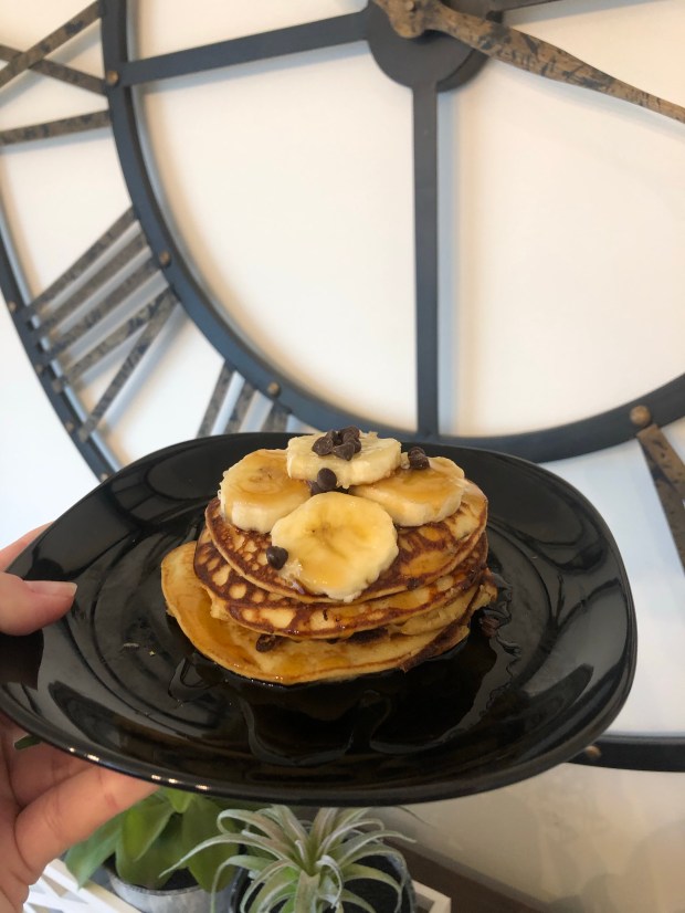 Here’s the recipe breakdown. Some things to keep in mind are that my measurements are *about* accurate. I also mostly went based on how the pancakes looked and how easy they were to flip – i.e., if they’re breaking apart and dripping everywhere when I tied to flip them, I’d let them cook for a little longer. Don’t overthink it. I surely didn’t 😂.