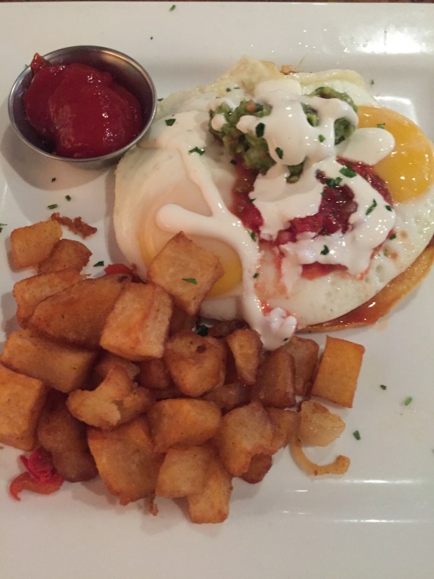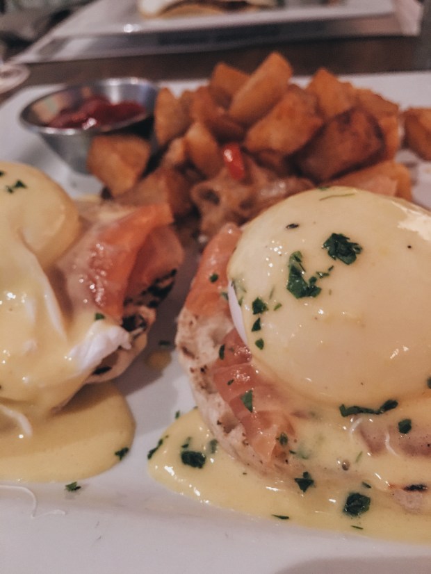 Get your heads out of the gutter! “Cock” is another word for rooster, remember?! The breakfast waffle sandwich is what drew us to this Murray Hill joint (feast your eyes here!) a few Saturdays ago. It was super cute, but WILDLY crowded, so I would say that The Flying Cock is most definitely a boozy-brunch kind of place. The crowd consisted of a bunch of people trying to get their Saturday AM drank on (but hey, there’s nothing wrong with that!). I ended up chickening out and instead of getting the massive waffle sandwich, I went with the Huevos Rancheros, while Ben got the Eggs Benedict. Both were pretty good, but I would probably go back to The Flying Cock for for some mimosas before I go back for some food.